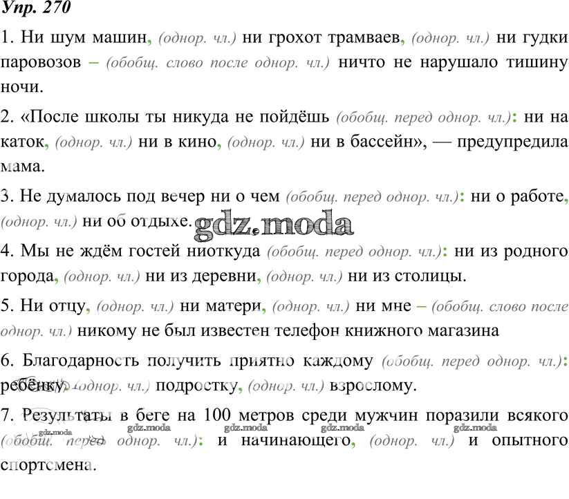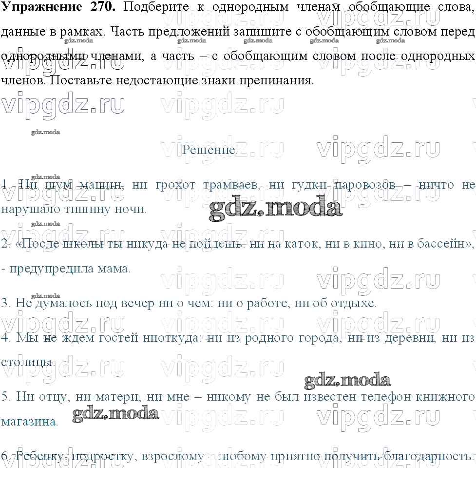ОТВЕТ на задание № 270 Учебник по Русскому языку 8 класс Тростенцова