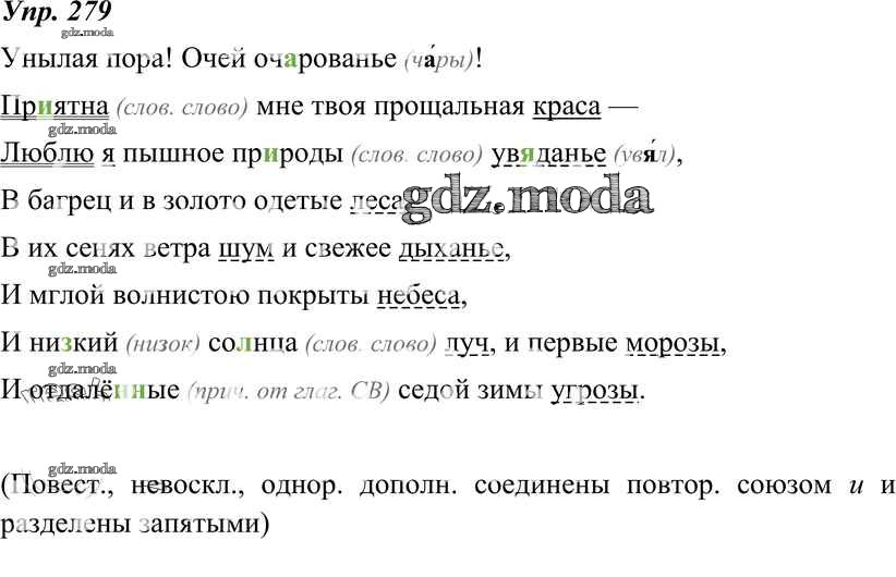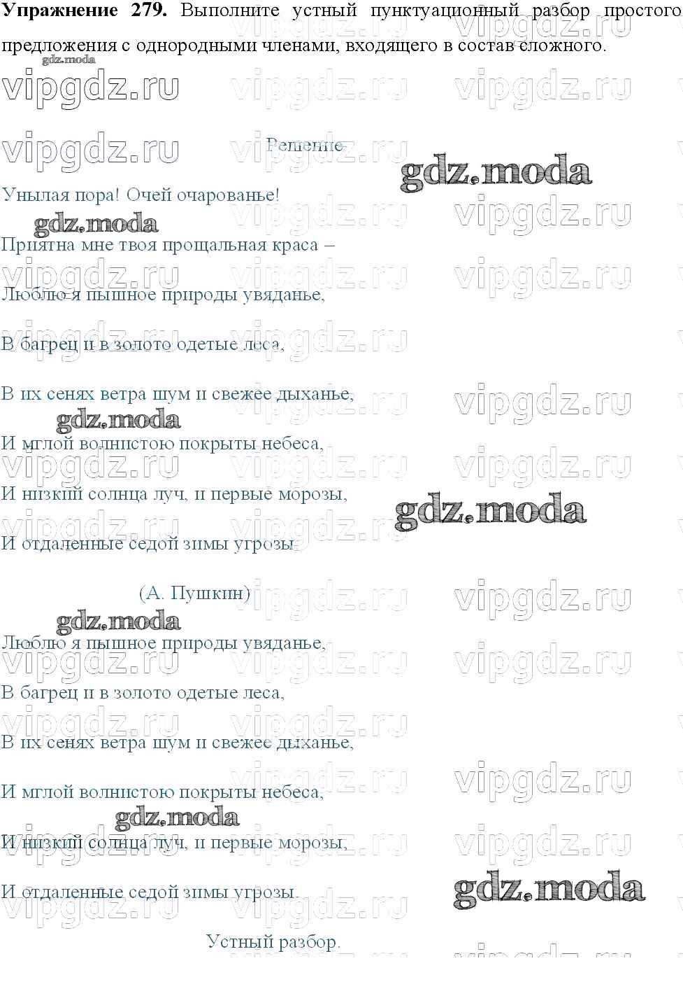 ОТВЕТ на задание № 279 Учебник по Русскому языку 8 класс Тростенцова