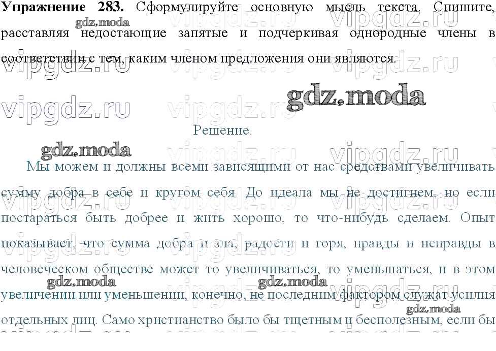 ОТВЕТ на задание № 283 Учебник по Русскому языку 8 класс Тростенцова