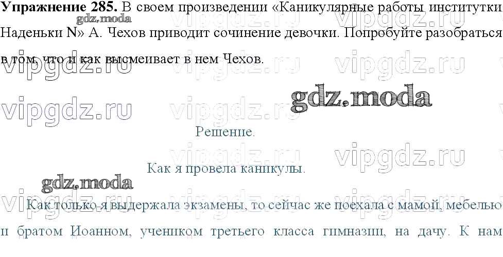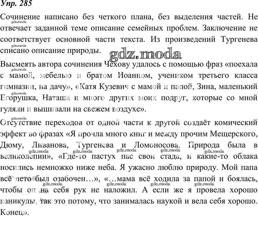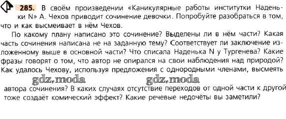 ОТВЕТ на задание № 285 Учебник по Русскому языку 8 класс Тростенцова
