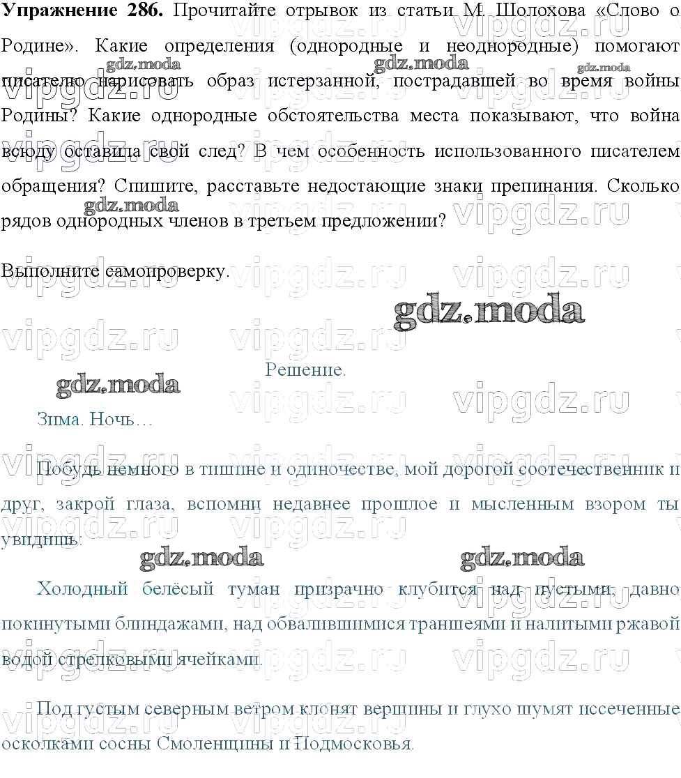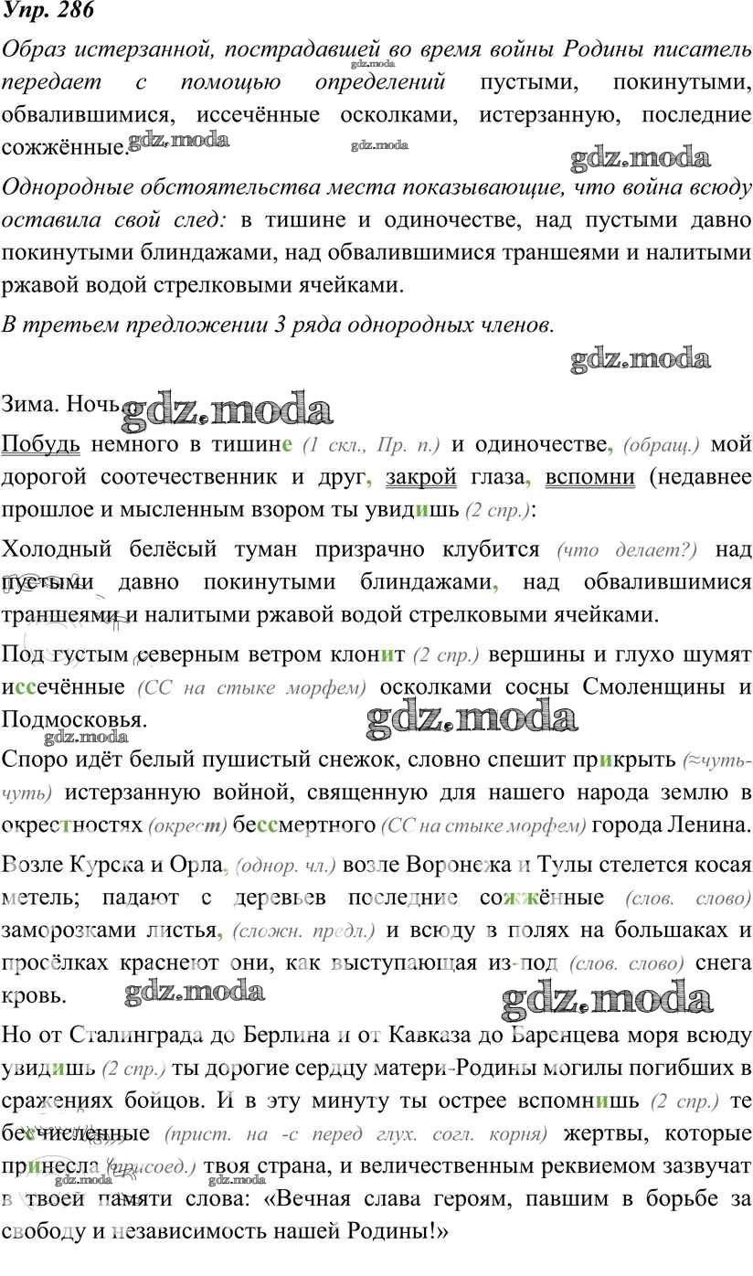 ОТВЕТ на задание № 286 Учебник по Русскому языку 8 класс Тростенцова