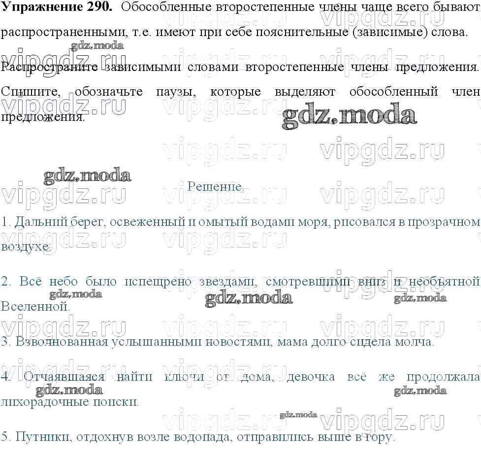 ОТВЕТ на задание № 290 Учебник по Русскому языку 8 класс Тростенцова