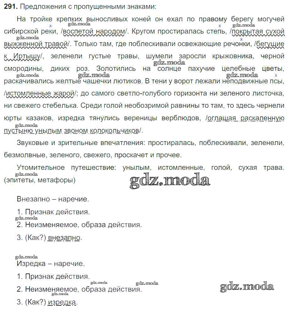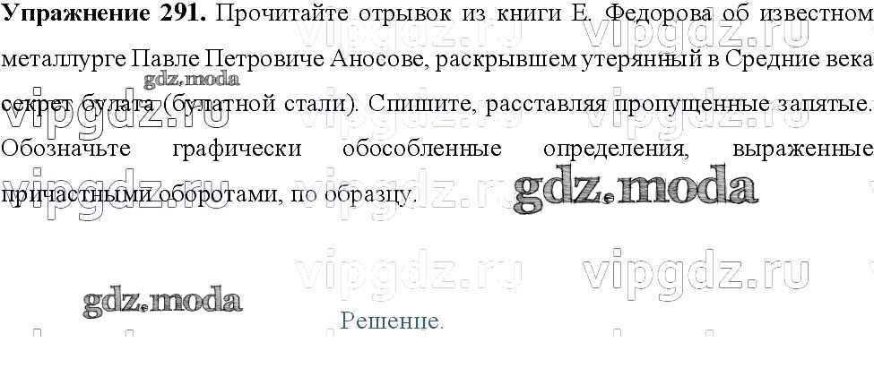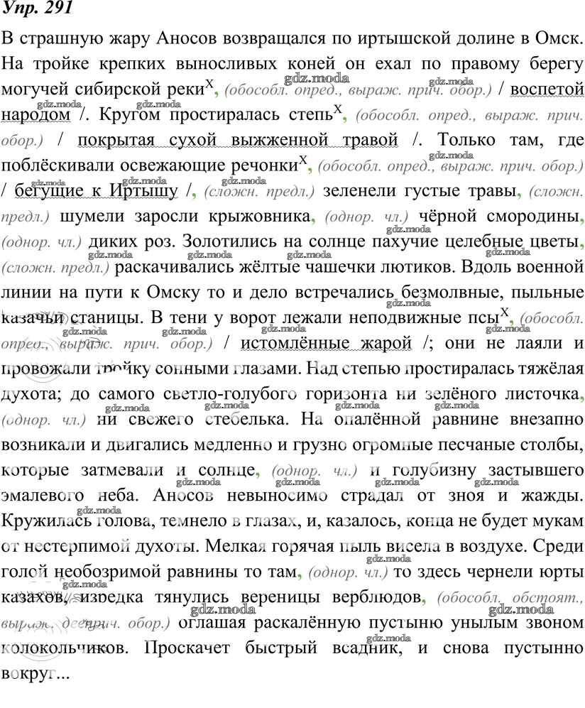 ОТВЕТ на задание № 291 Учебник по Русскому языку 8 класс Тростенцова