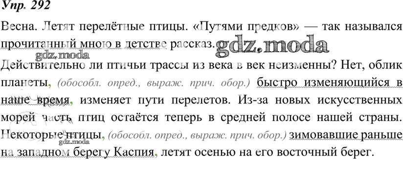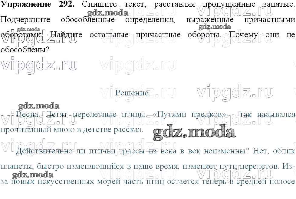 ОТВЕТ на задание № 292 Учебник по Русскому языку 8 класс Тростенцова