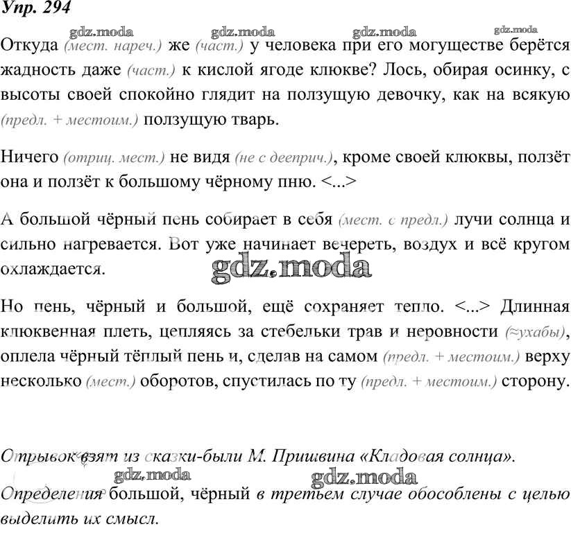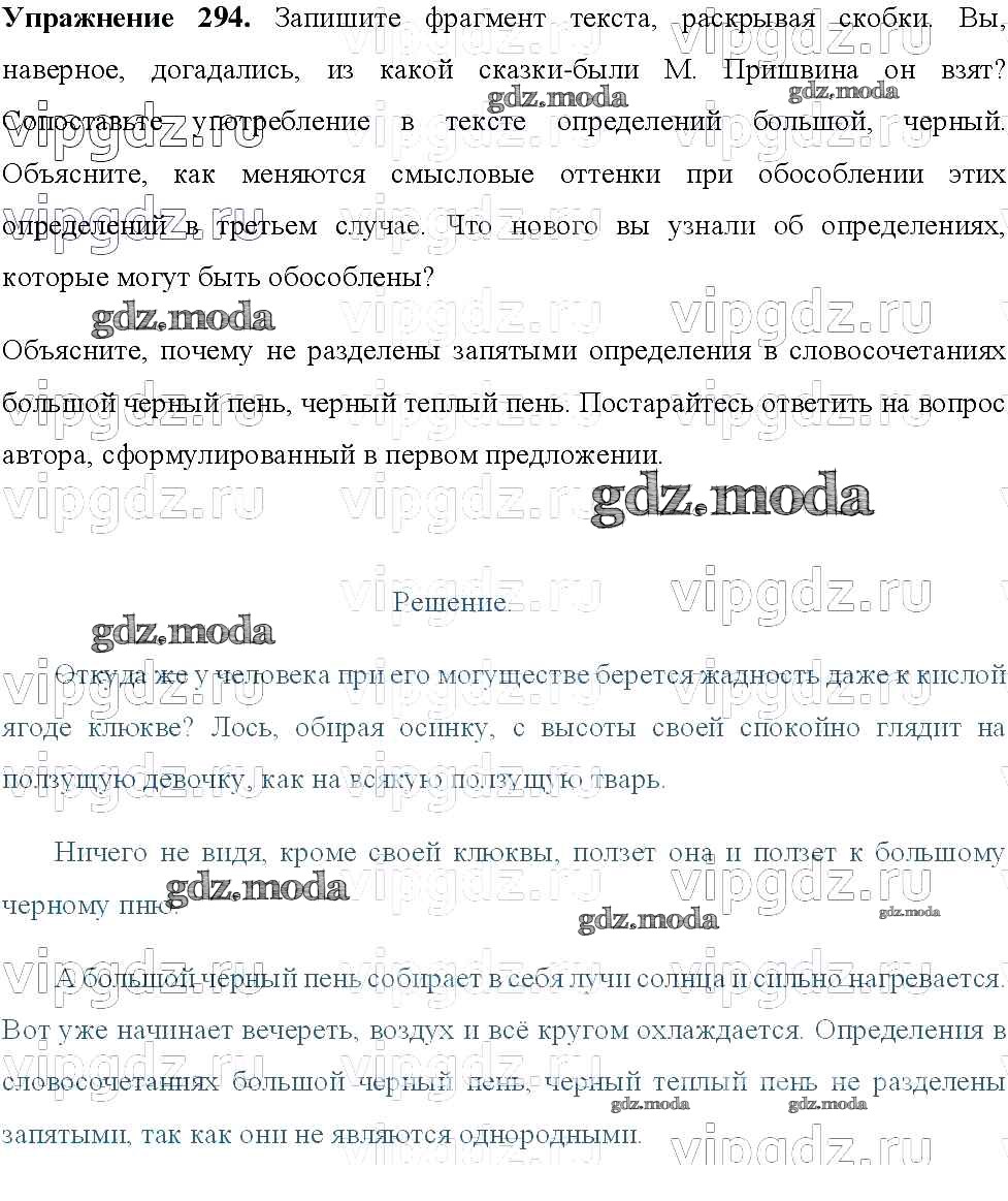 ОТВЕТ на задание № 294 Учебник по Русскому языку 8 класс Тростенцова