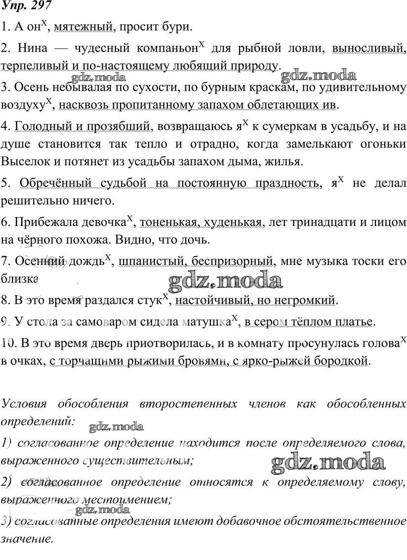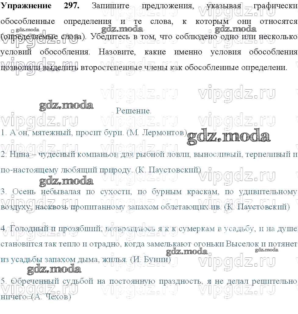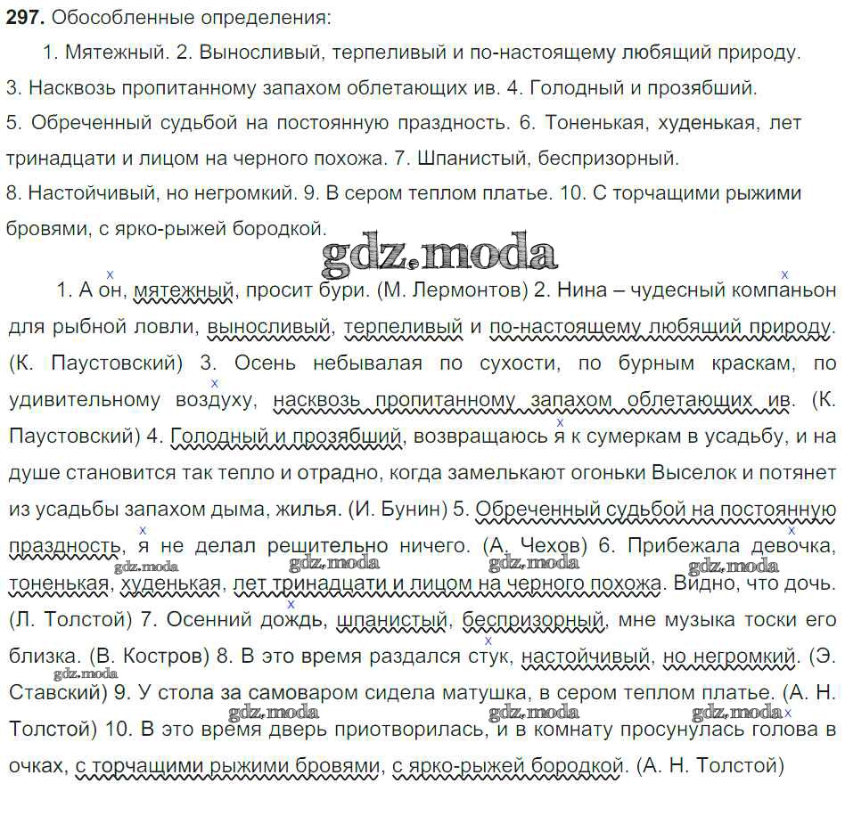 ОТВЕТ на задание № 297 Учебник по Русскому языку 8 класс Тростенцова
