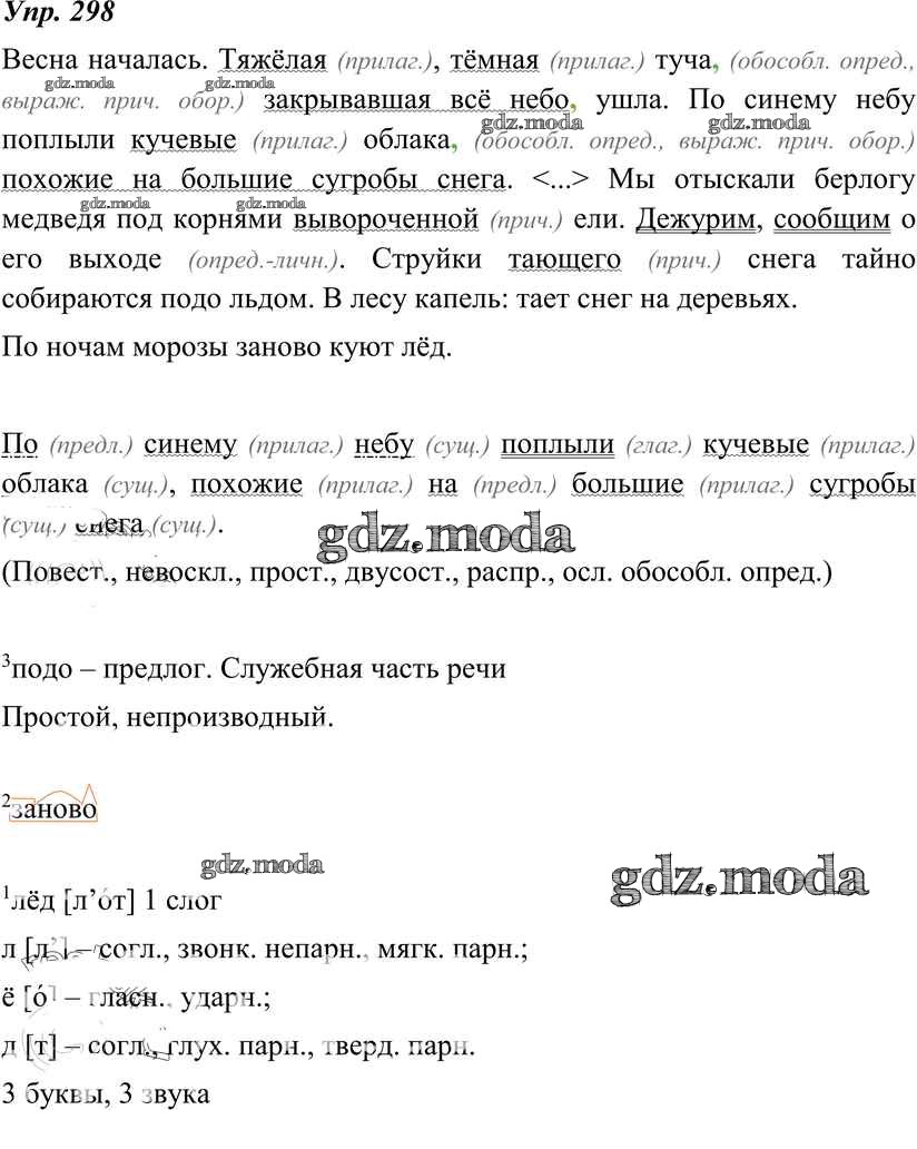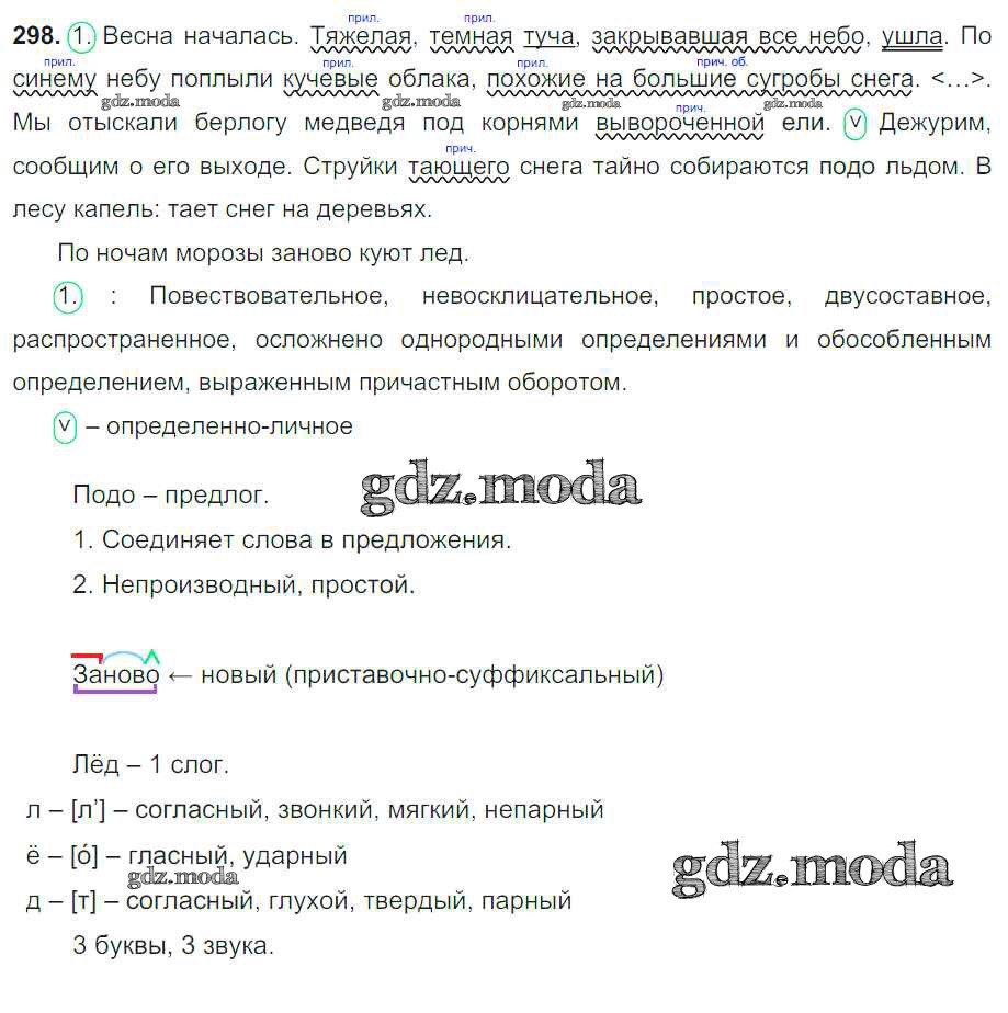 ОТВЕТ на задание № 298 Учебник по Русскому языку 8 класс Тростенцова