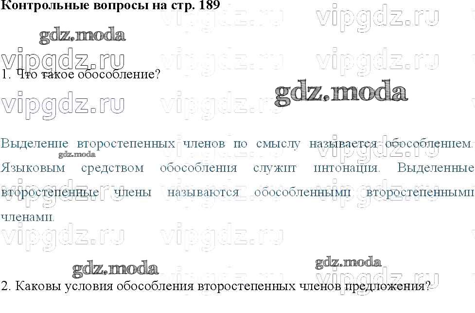 ОТВЕТ на задание № стр.189 Учебник по Русскому языку 8 класс Тростенцова