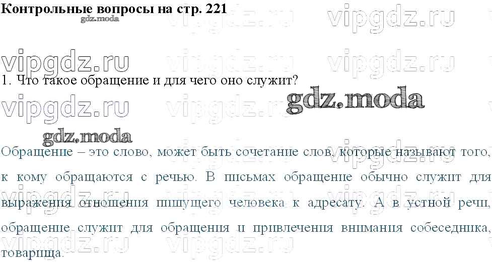 ГДЗ решение к заданию № стр.221 Русский язык 8 класс Тростенцова Л.А. Просвещение 2014 ФГОС бесплатно на гдз.мода!