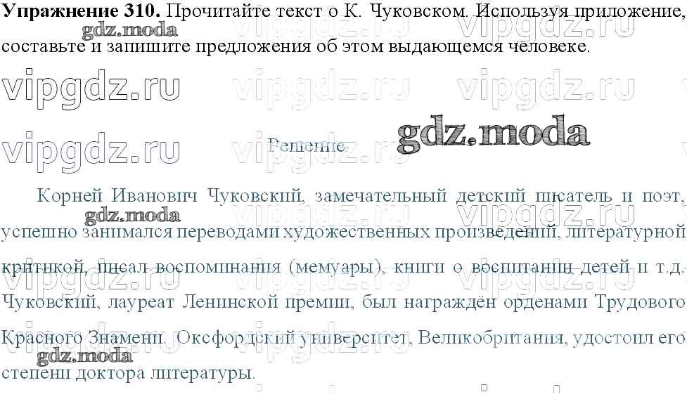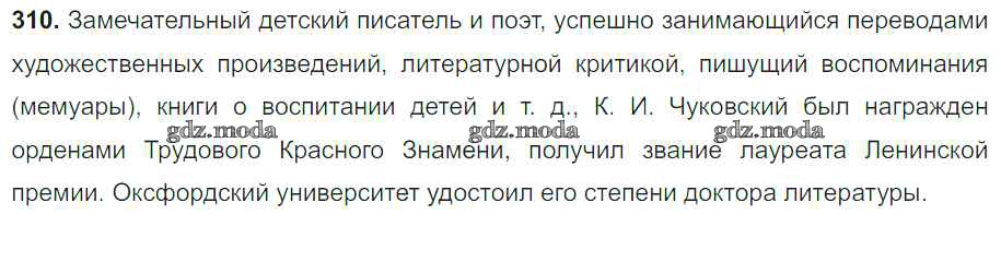 ОТВЕТ на задание № 310 Учебник по Русскому языку 8 класс Тростенцова