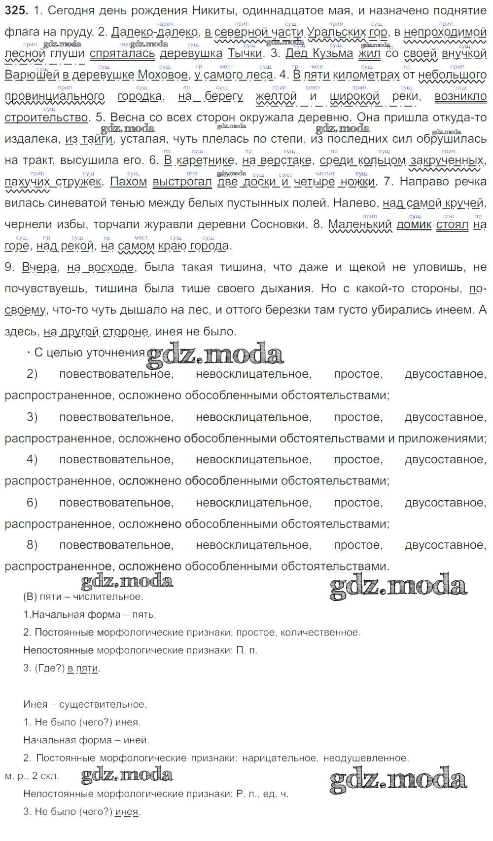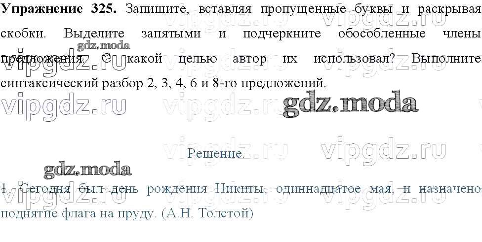 ОТВЕТ на задание № 325 Учебник по Русскому языку 8 класс Тростенцова