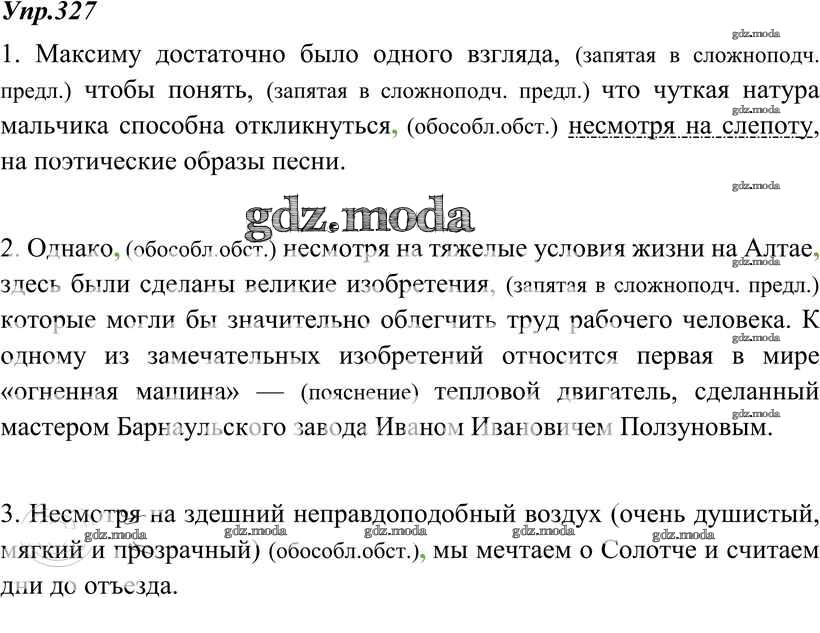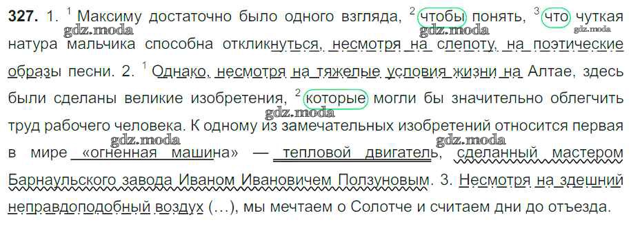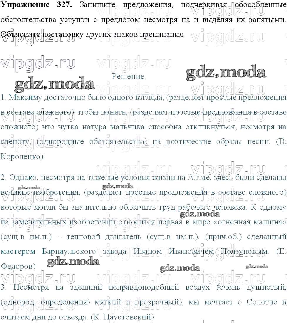 ОТВЕТ на задание № 327 Учебник по Русскому языку 8 класс Тростенцова