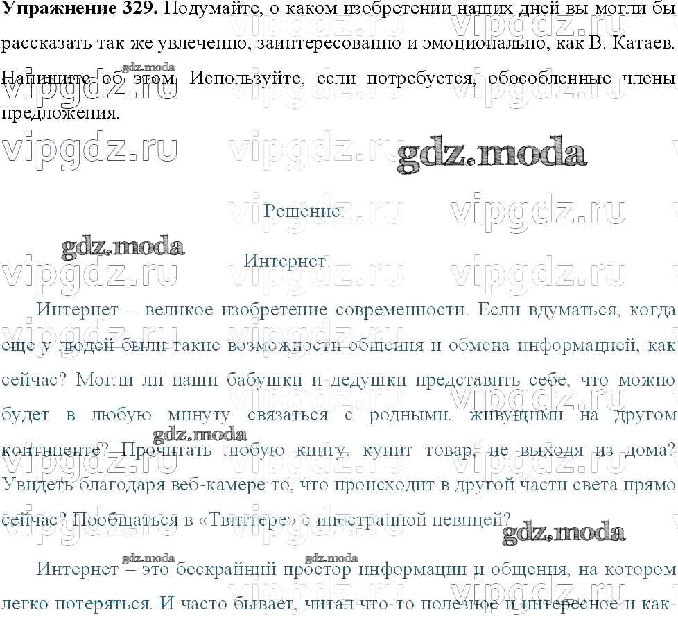 ОТВЕТ на задание № 329 Учебник по Русскому языку 8 класс Тростенцова