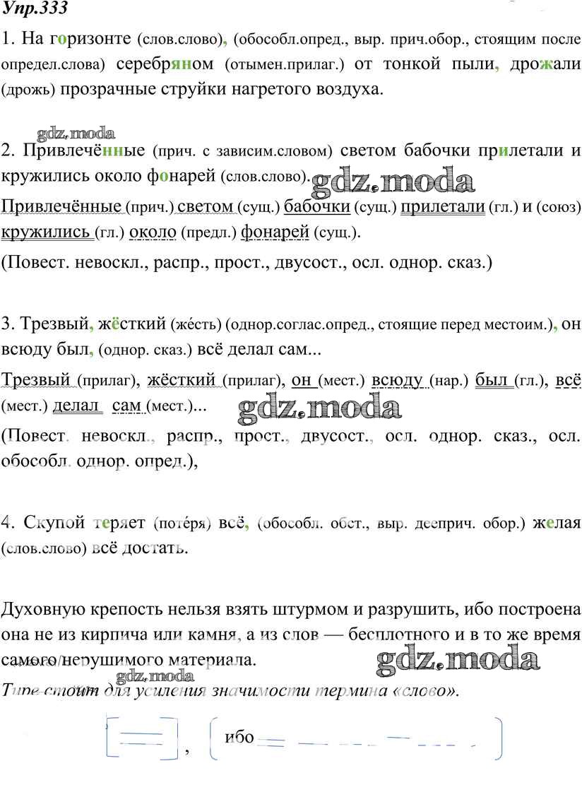 ОТВЕТ на задание № 333 Учебник по Русскому языку 8 класс Тростенцова