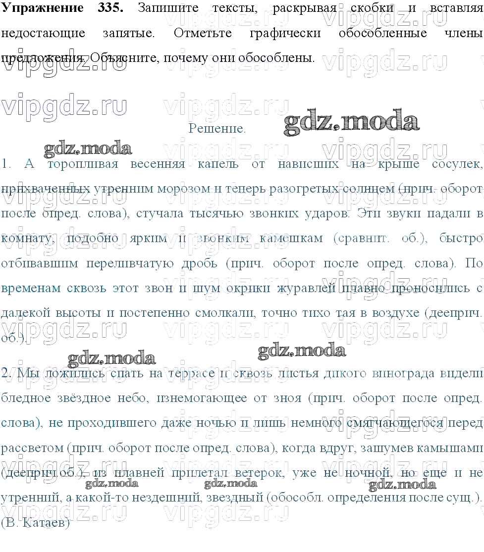 ОТВЕТ на задание № 335 Учебник по Русскому языку 8 класс Тростенцова