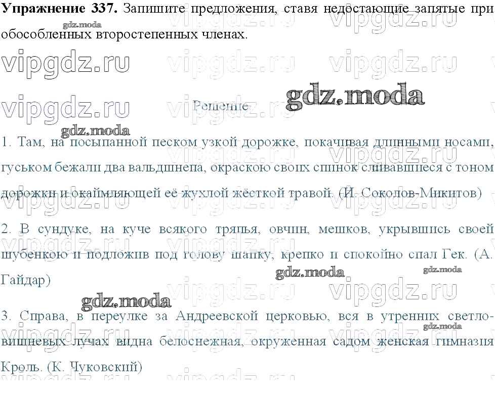 ОТВЕТ на задание № 337 Учебник по Русскому языку 8 класс Тростенцова