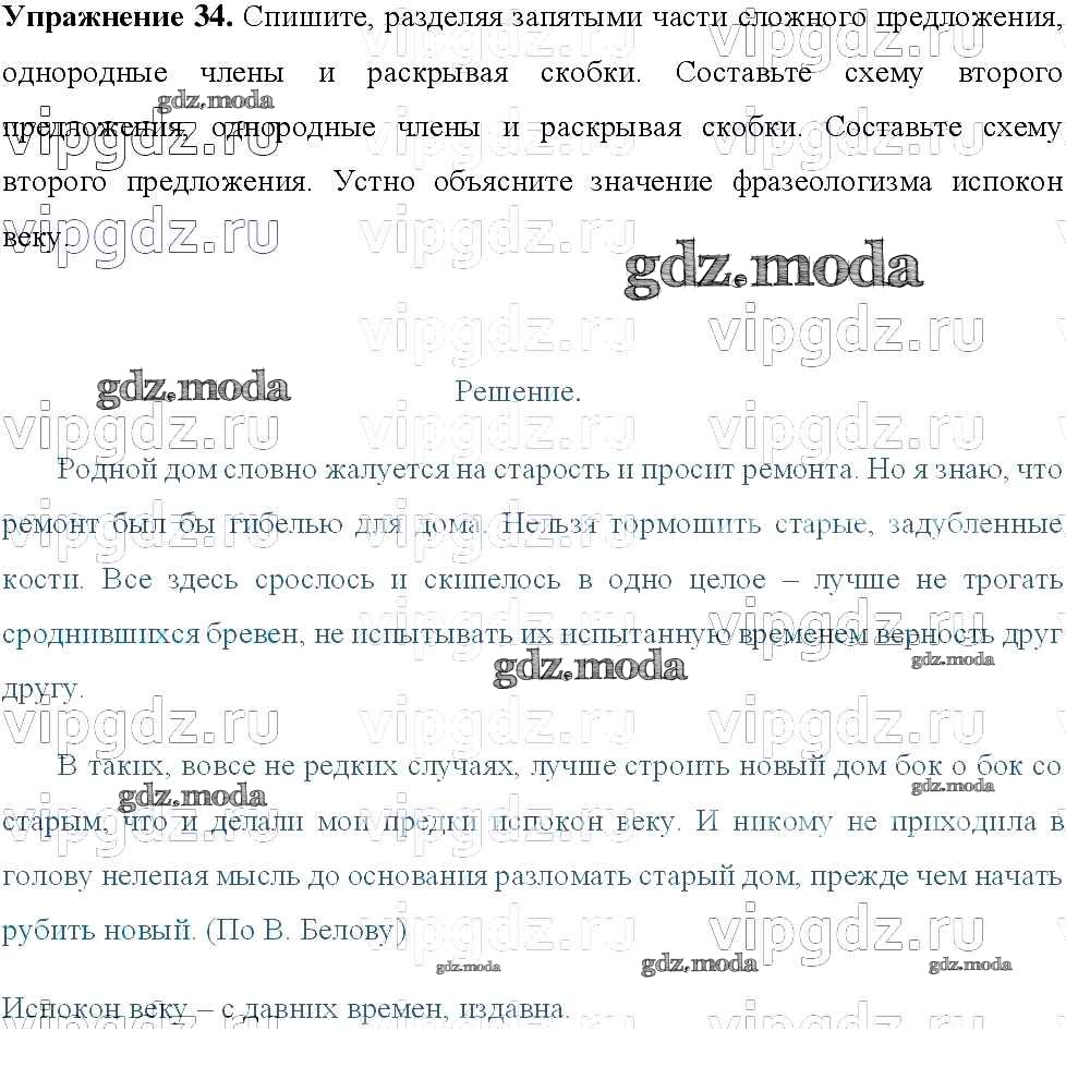 ОТВЕТ на задание № 34 Учебник по Русскому языку 8 класс Тростенцова