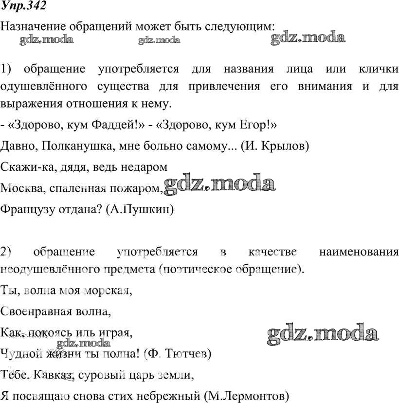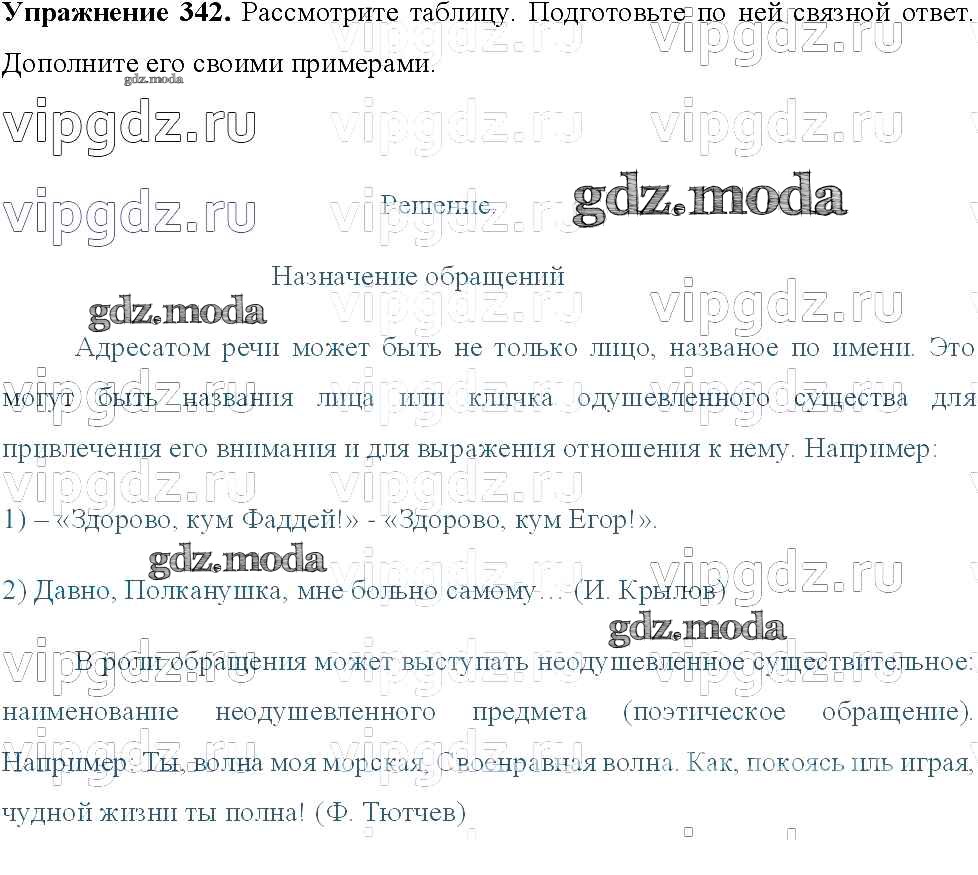 ОТВЕТ на задание № 342 Учебник по Русскому языку 8 класс Тростенцова