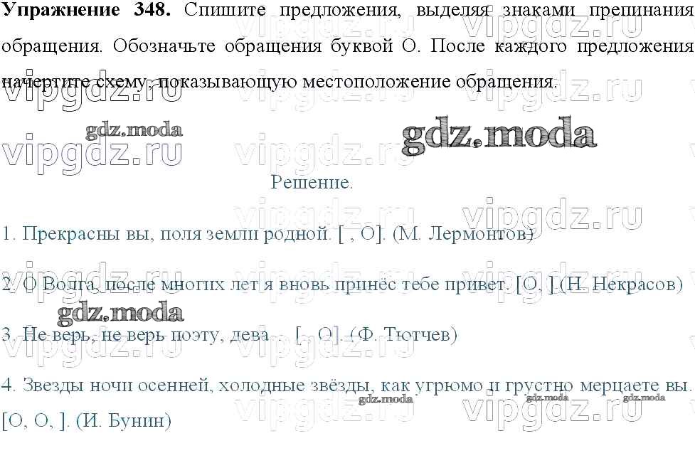 ОТВЕТ на задание № 348 Учебник по Русскому языку 8 класс Тростенцова