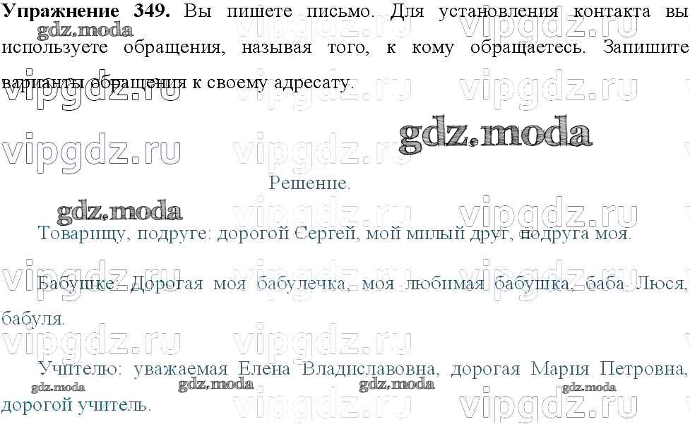 ОТВЕТ на задание № 349 Учебник по Русскому языку 8 класс Тростенцова