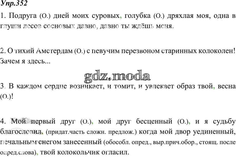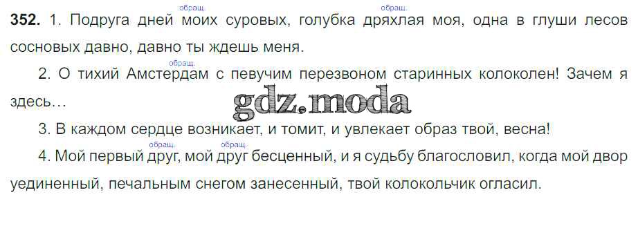 ОТВЕТ на задание № 352 Учебник по Русскому языку 8 класс Тростенцова