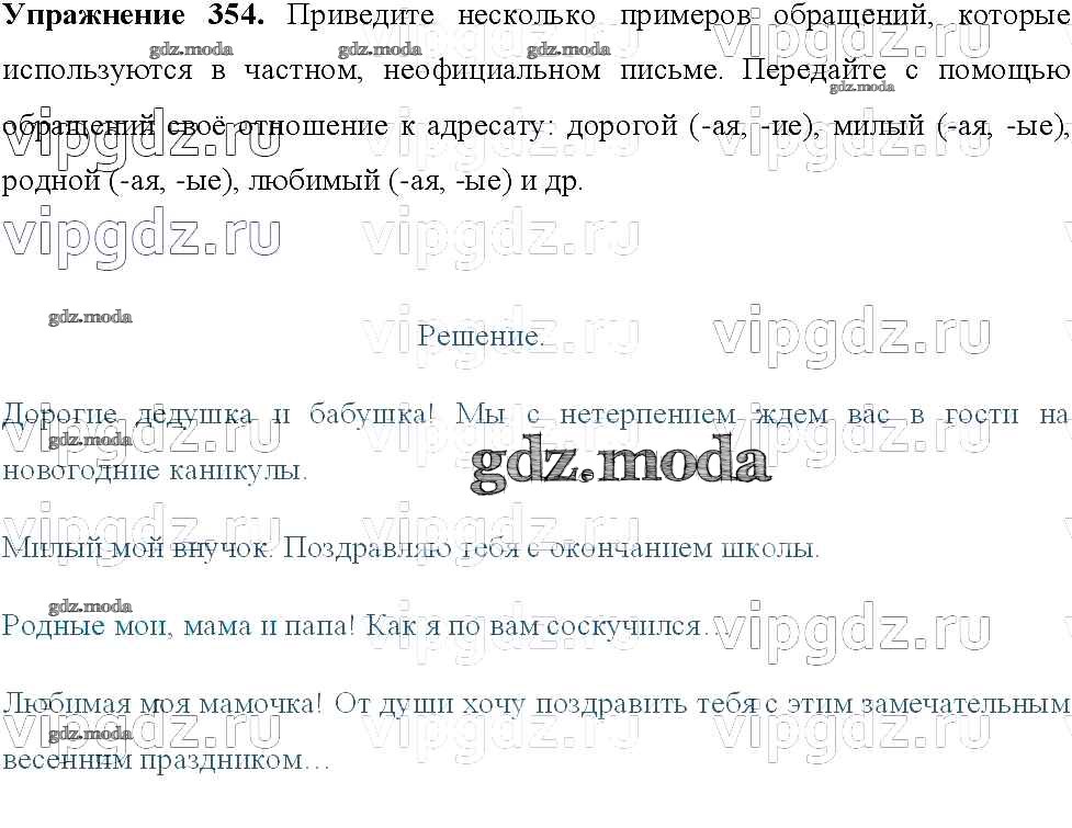 ОТВЕТ на задание № 354 Учебник по Русскому языку 8 класс Тростенцова