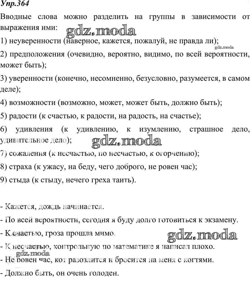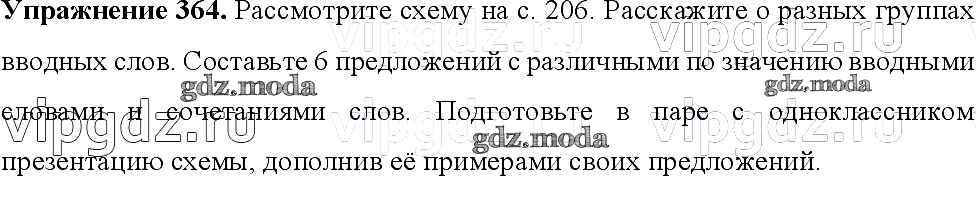 ОТВЕТ на задание № 364 Учебник по Русскому языку 8 класс Тростенцова