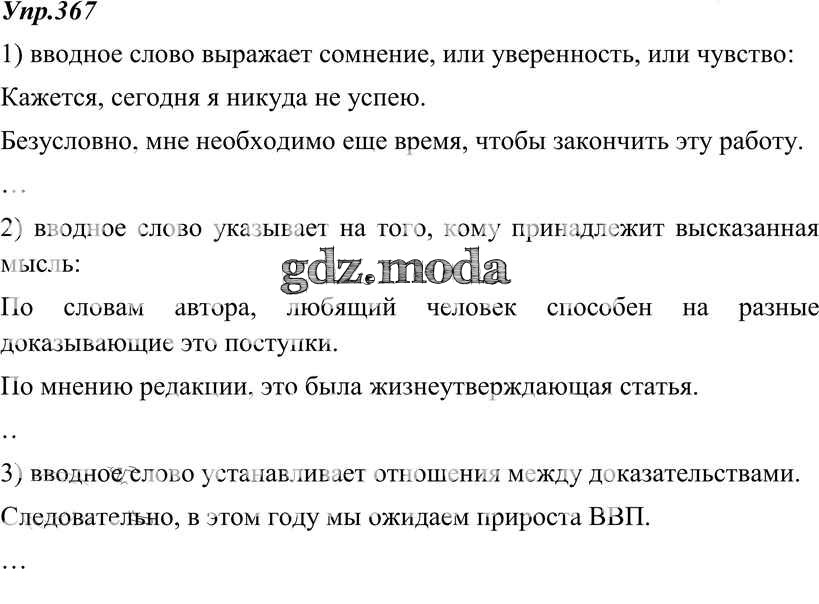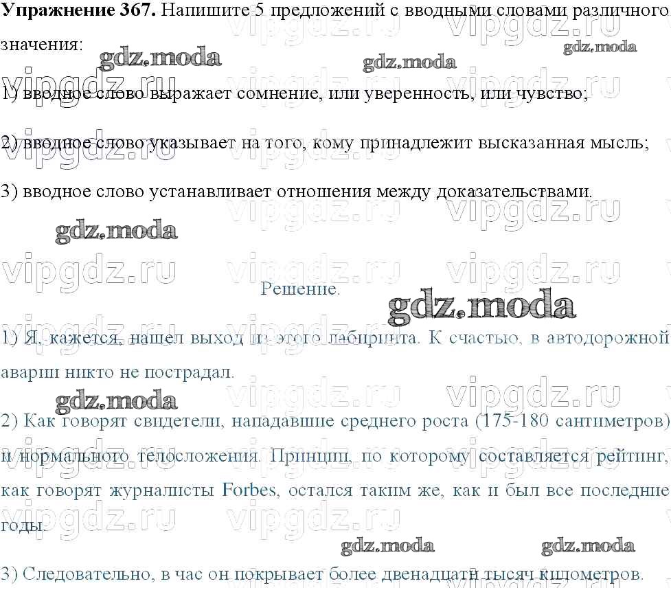 ОТВЕТ на задание № 367 Учебник по Русскому языку 8 класс Тростенцова