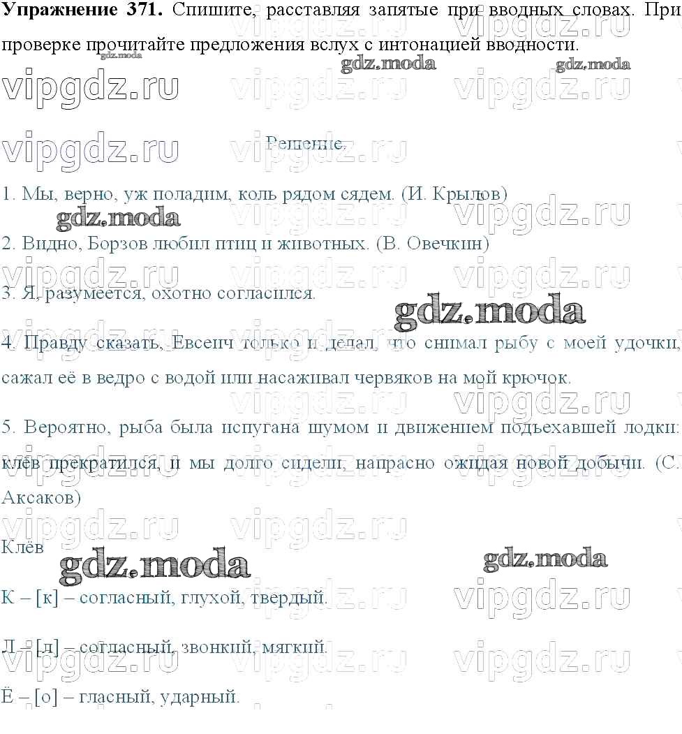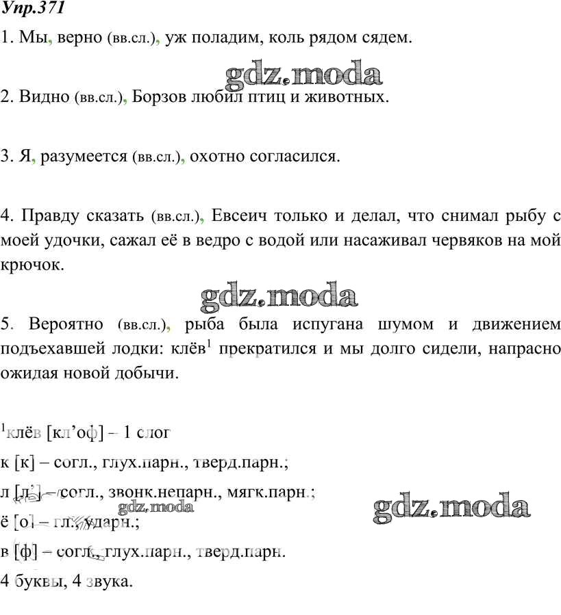 ОТВЕТ на задание № 371 Учебник по Русскому языку 8 класс Тростенцова