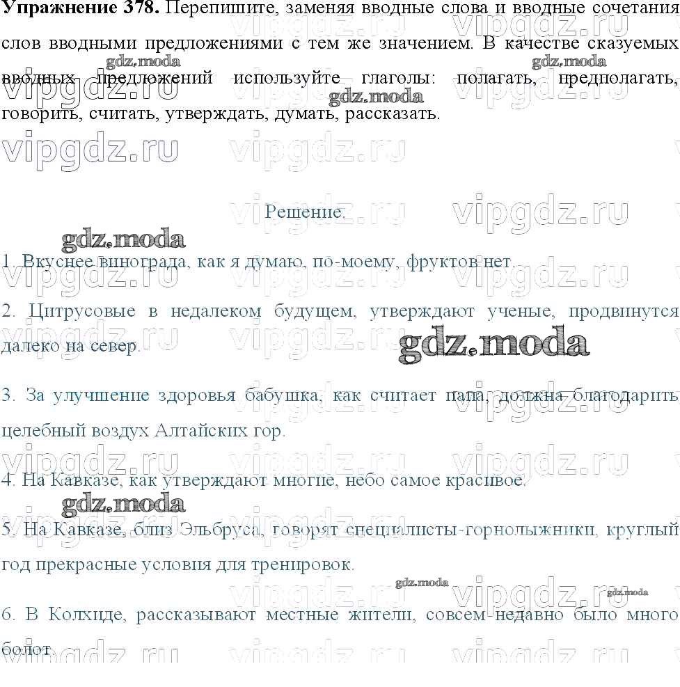 ОТВЕТ на задание № 378 Учебник по Русскому языку 8 класс Тростенцова