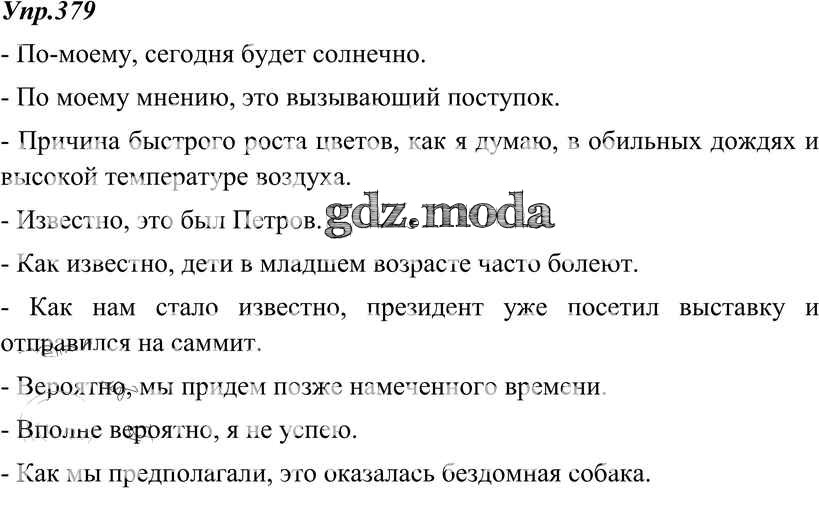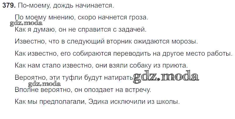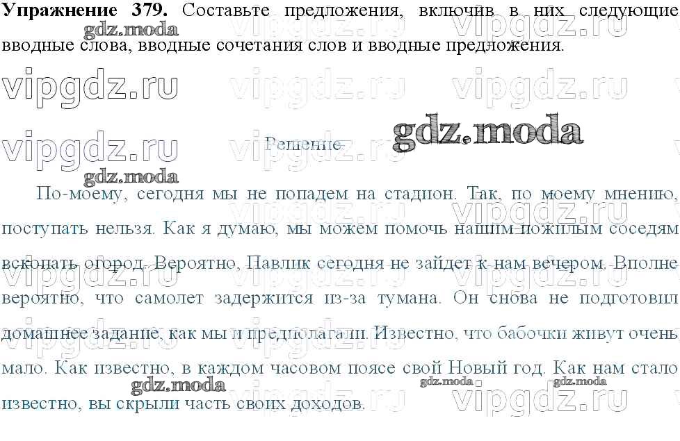 ОТВЕТ на задание № 379 Учебник по Русскому языку 8 класс Тростенцова