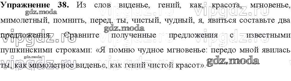 ОТВЕТ на задание № 38 Учебник по Русскому языку 8 класс Тростенцова
