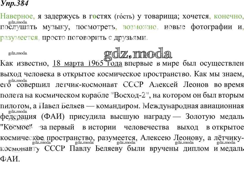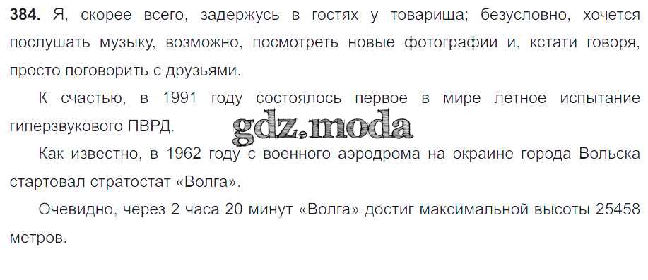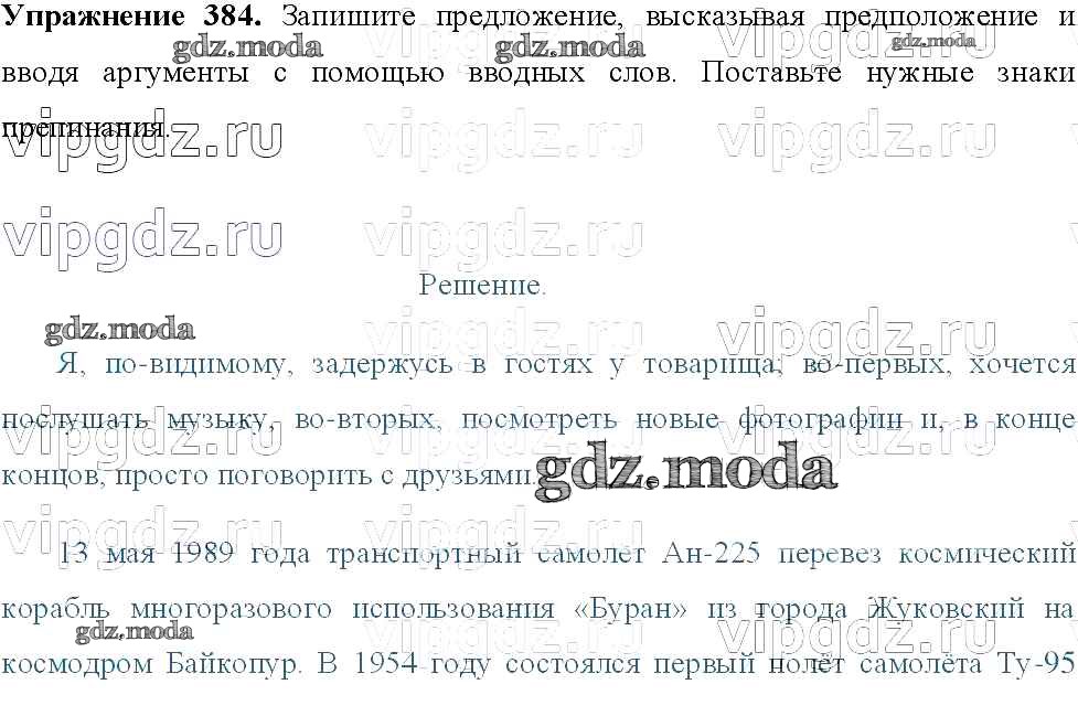 ОТВЕТ на задание № 384 Учебник по Русскому языку 8 класс Тростенцова