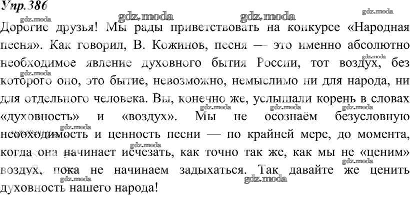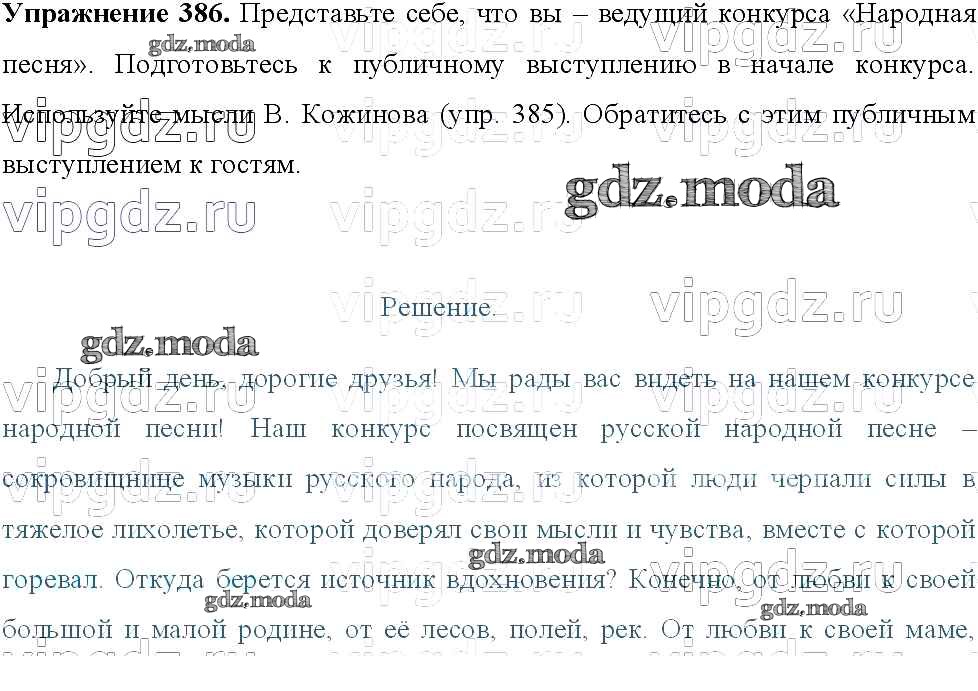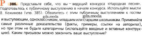 ОТВЕТ на задание № 386 Учебник по Русскому языку 8 класс Тростенцова