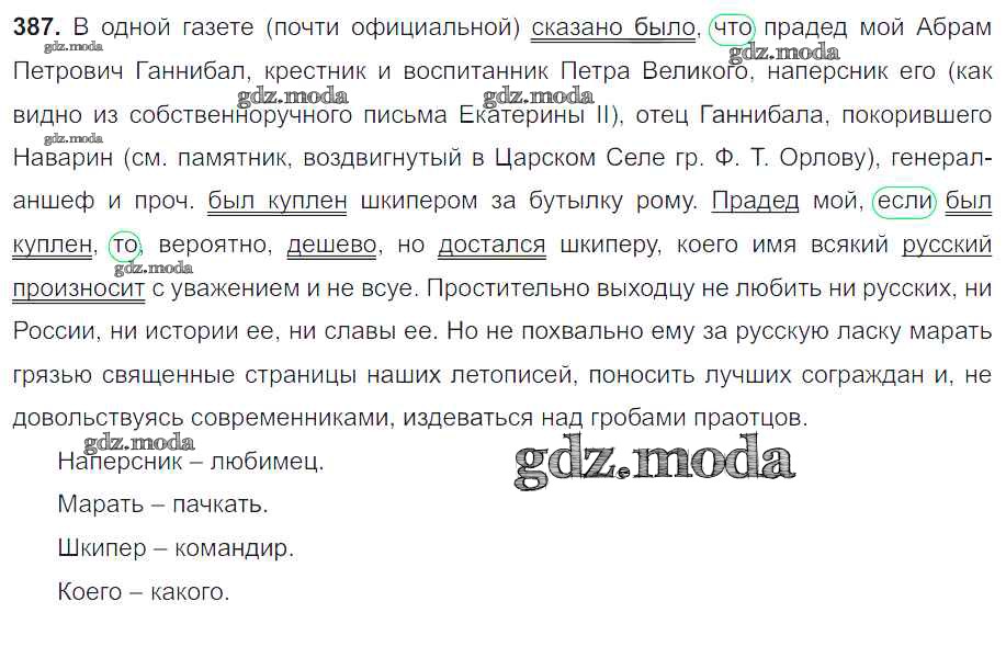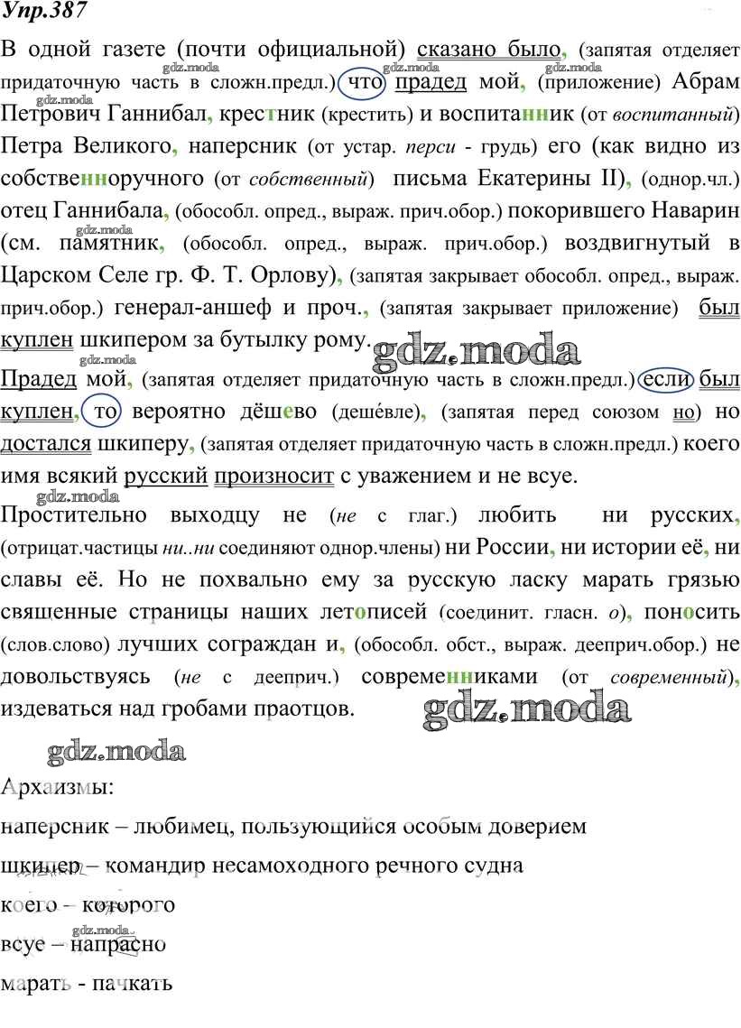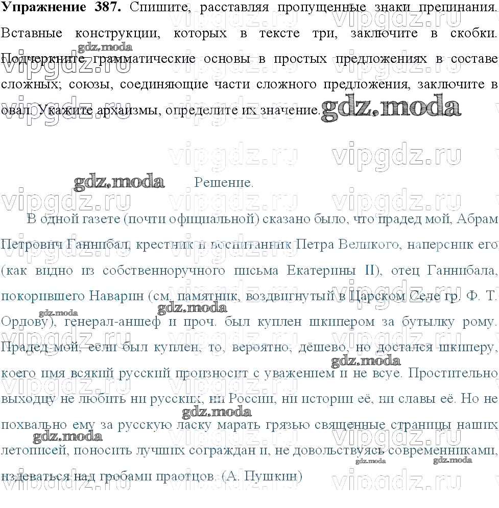 ОТВЕТ на задание № 387 Учебник по Русскому языку 8 класс Тростенцова