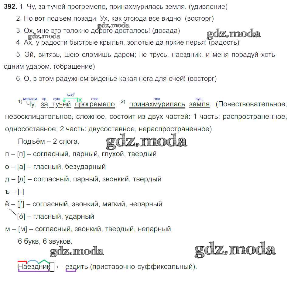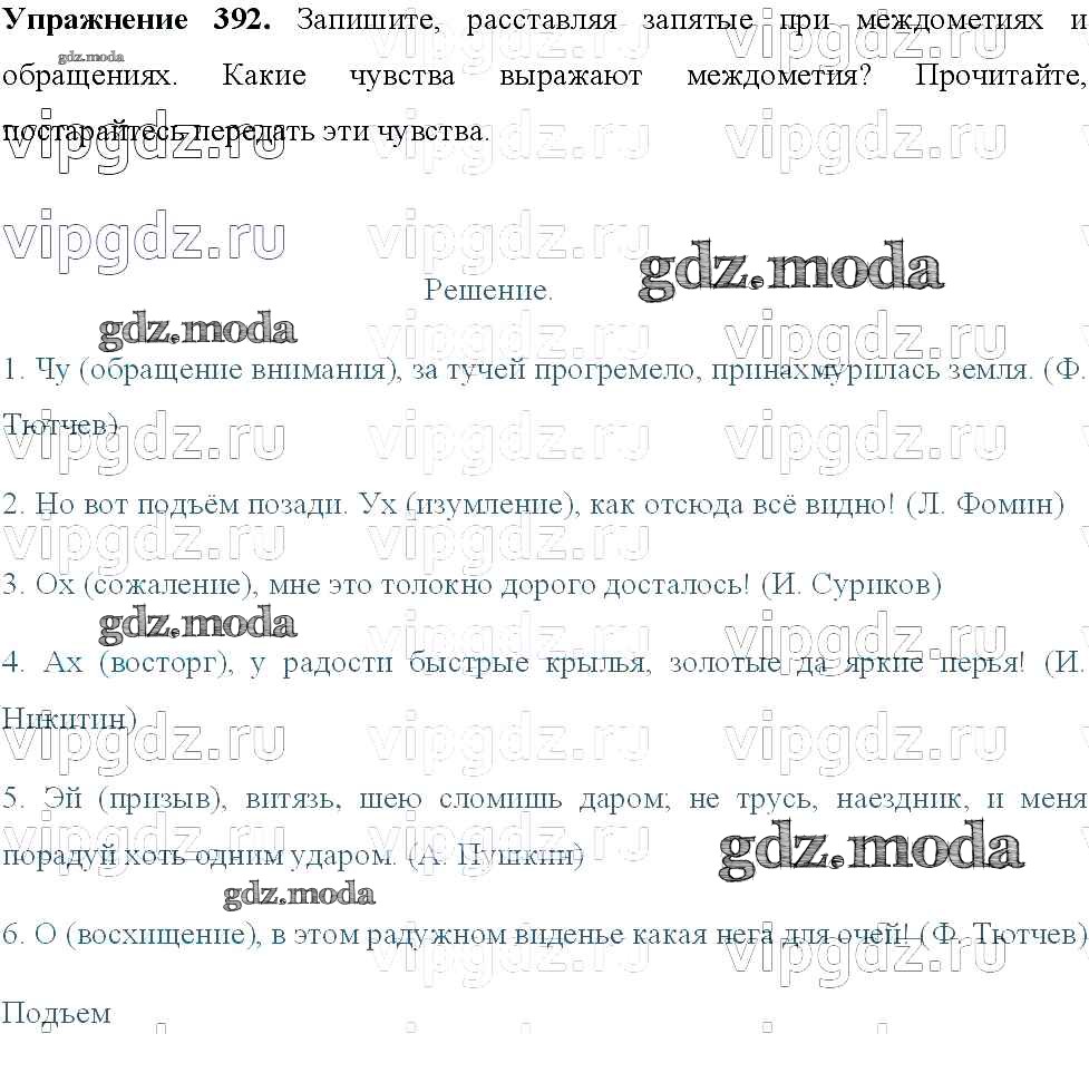 ОТВЕТ на задание № 392 Учебник по Русскому языку 8 класс Тростенцова