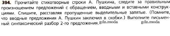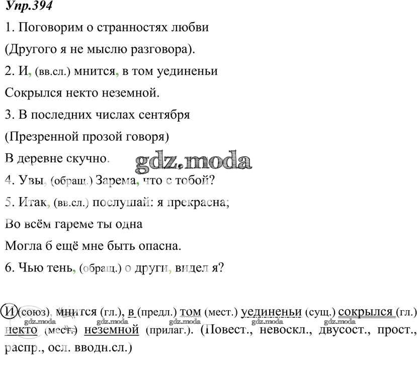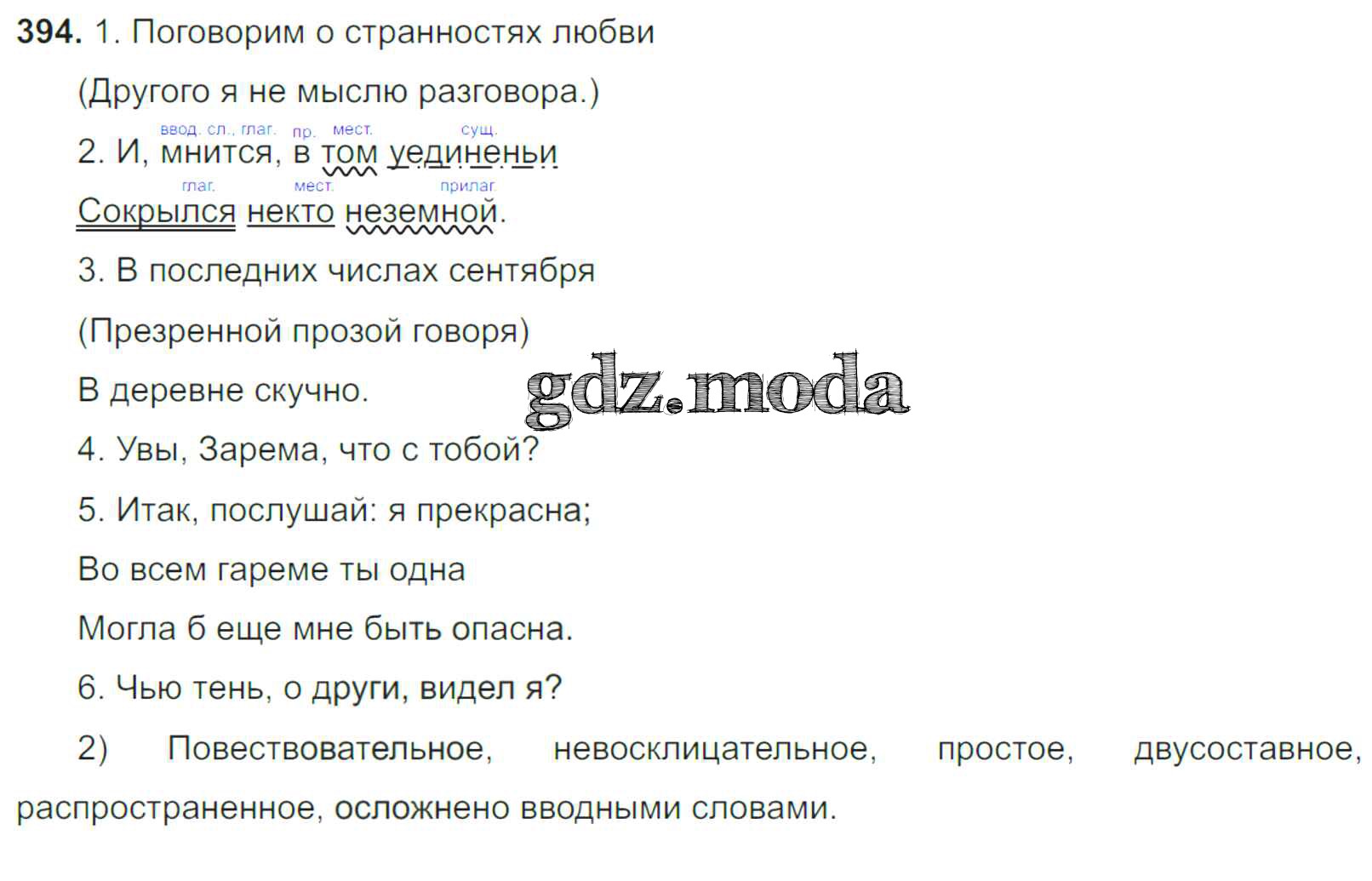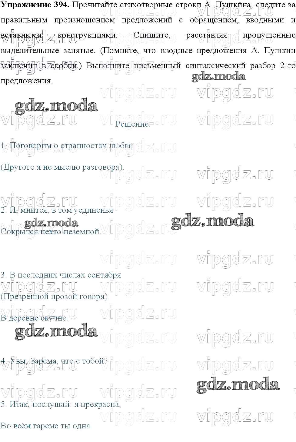 ОТВЕТ на задание № 394 Учебник по Русскому языку 8 класс Тростенцова