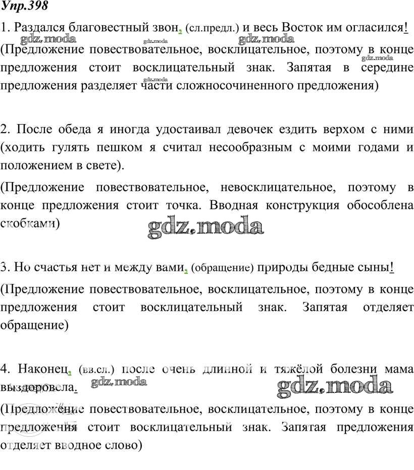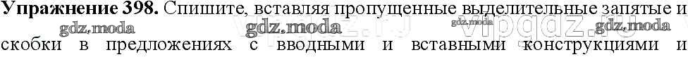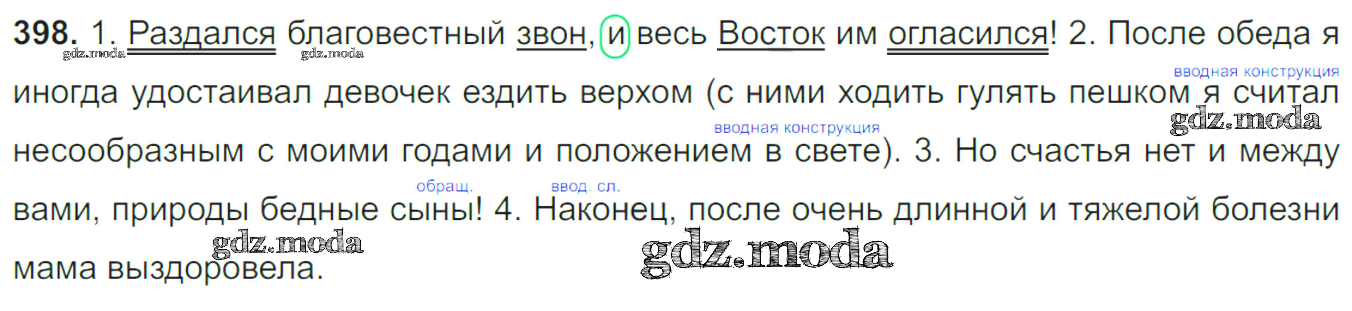ОТВЕТ на задание № 398 Учебник по Русскому языку 8 класс Тростенцова