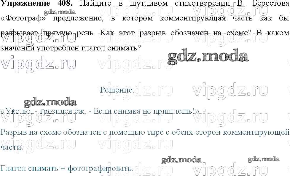 ОТВЕТ на задание № 408 Учебник по Русскому языку 8 класс Тростенцова