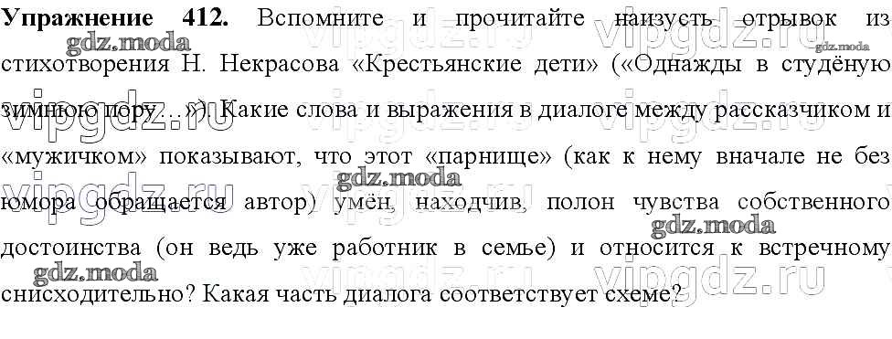 ОТВЕТ на задание № 412 Учебник по Русскому языку 8 класс Тростенцова
