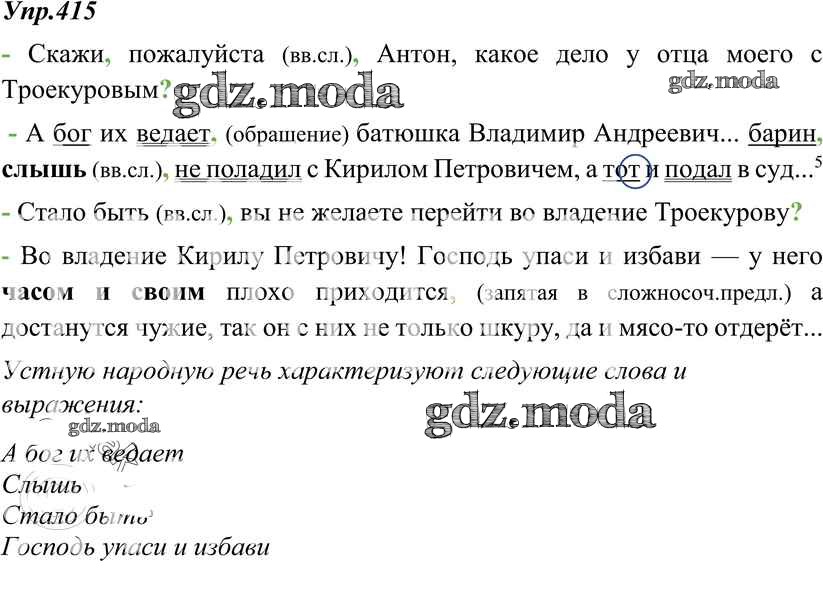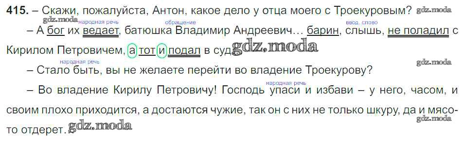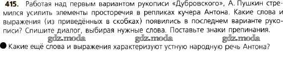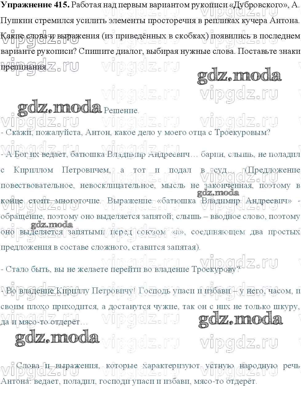 ОТВЕТ на задание № 415 Учебник по Русскому языку 8 класс Тростенцова