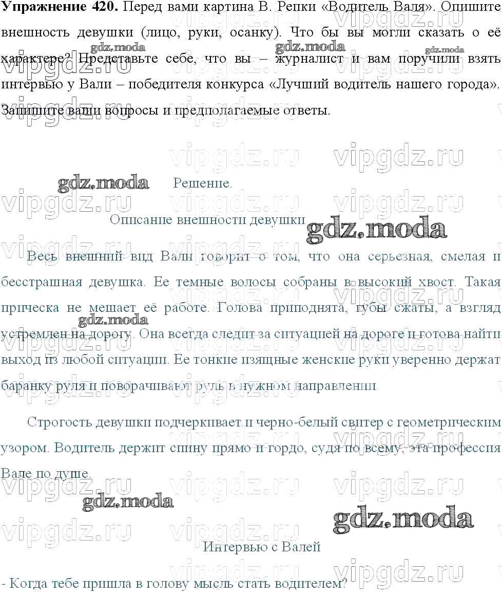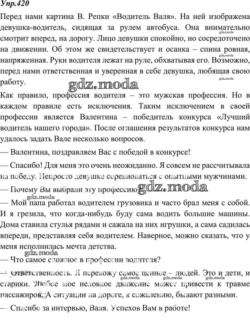 ОТВЕТ на задание № 420 Учебник по Русскому языку 8 класс Тростенцова