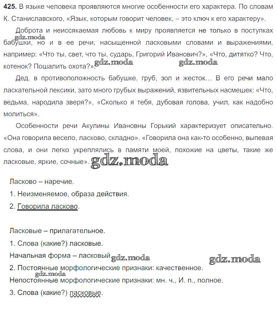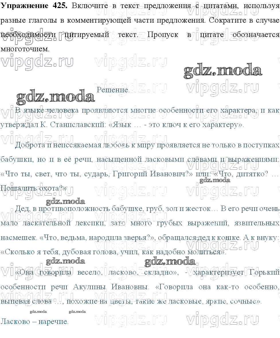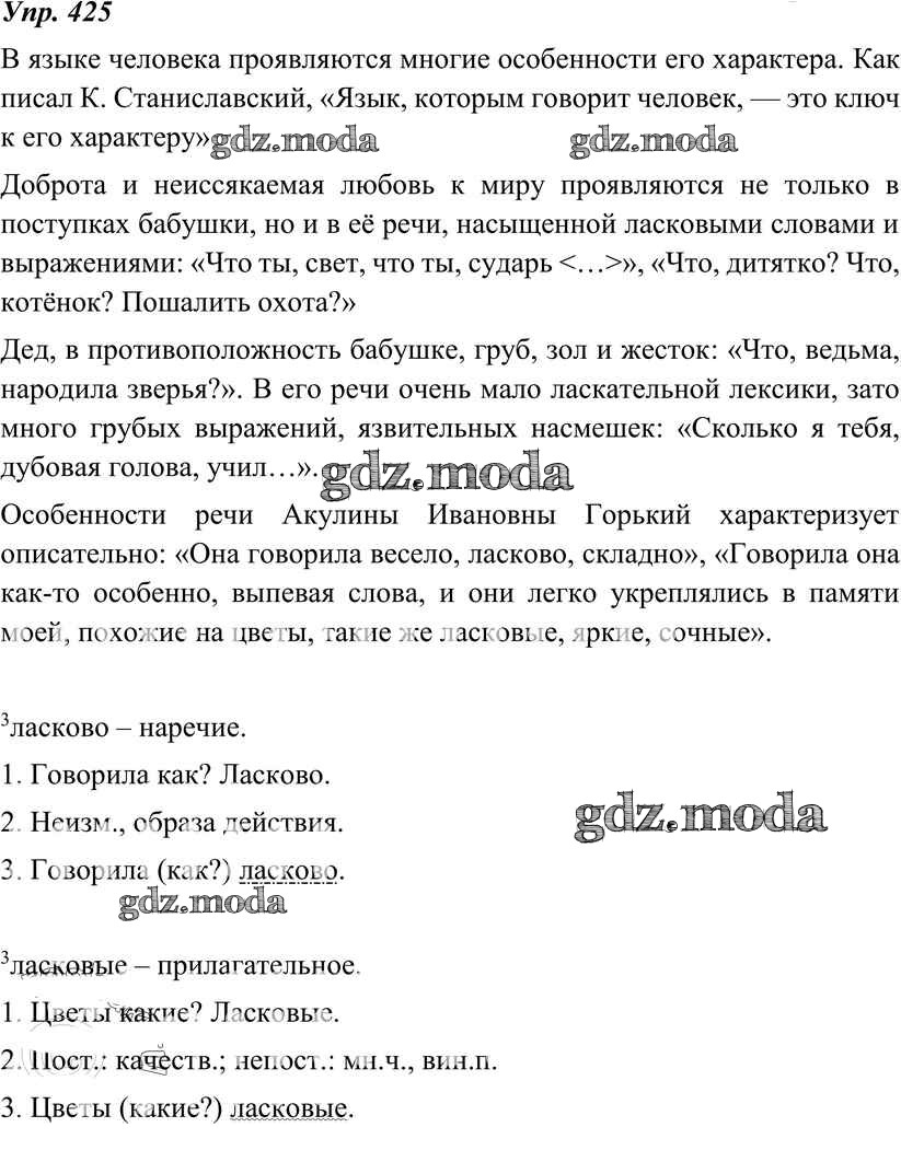 ОТВЕТ на задание № 425 Учебник по Русскому языку 8 класс Тростенцова