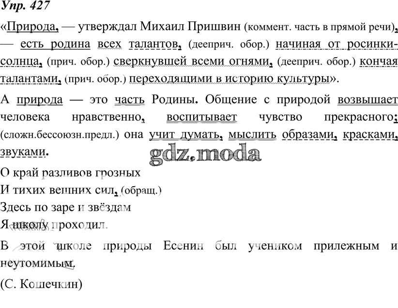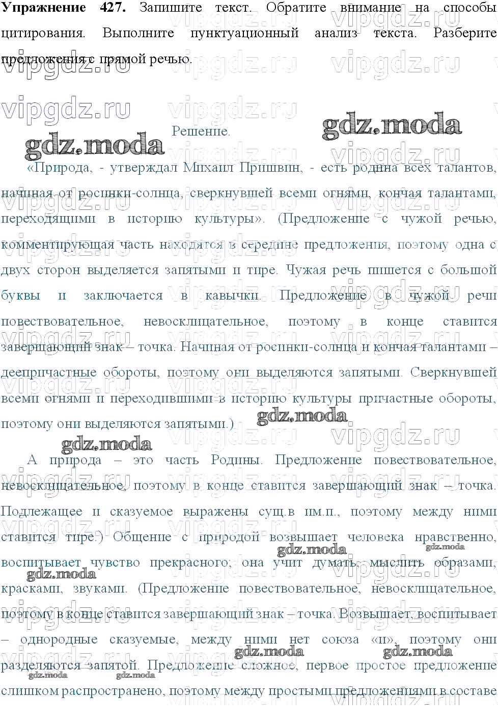 ОТВЕТ на задание № 427 Учебник по Русскому языку 8 класс Тростенцова