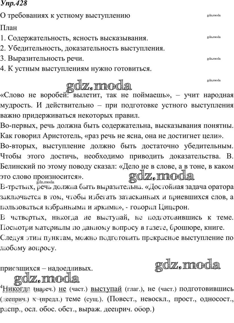 ОТВЕТ на задание № 428 Учебник по Русскому языку 8 класс Тростенцова