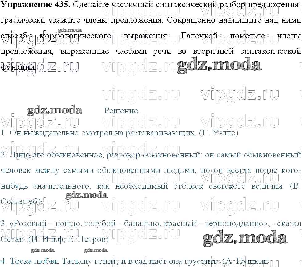 ОТВЕТ на задание № 435 Учебник по Русскому языку 8 класс Тростенцова