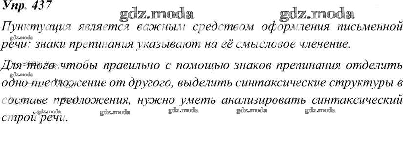 ОТВЕТ на задание № 437 Учебник по Русскому языку 8 класс Тростенцова