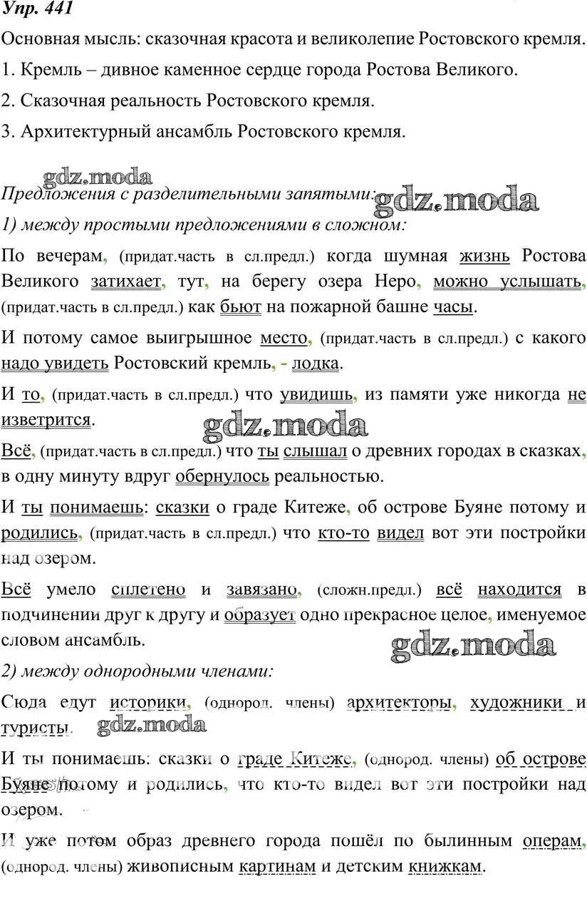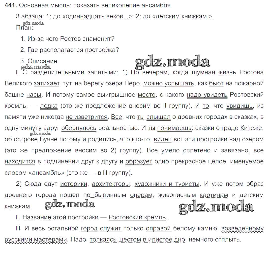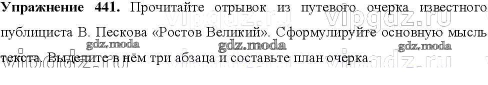 ОТВЕТ на задание № 441 Учебник по Русскому языку 8 класс Тростенцова
