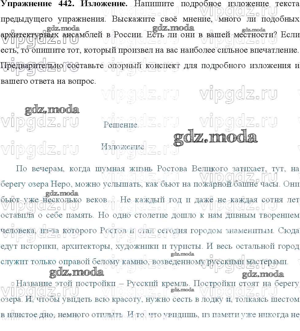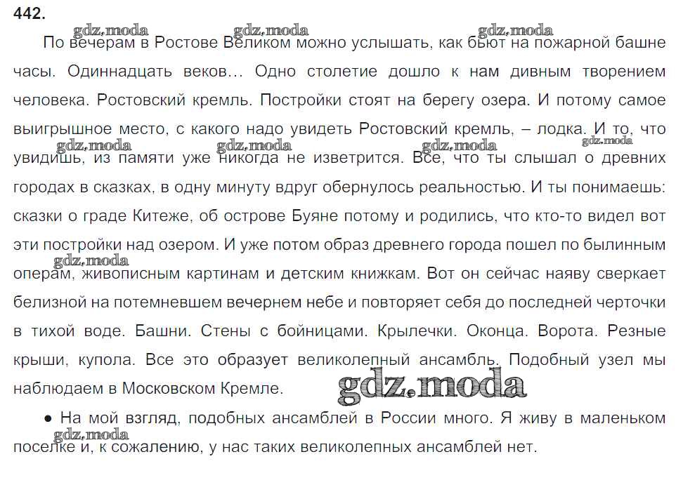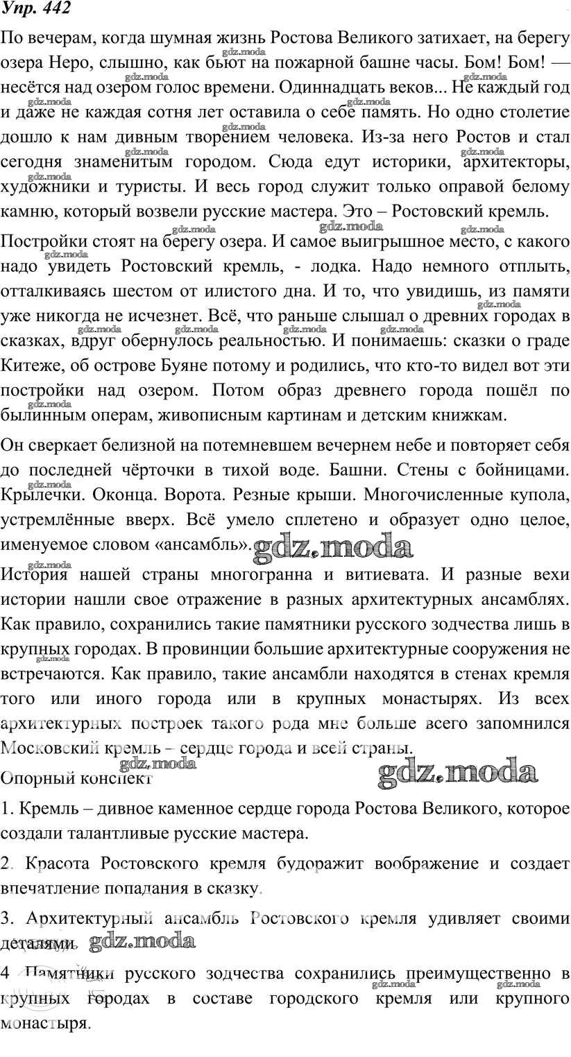 ОТВЕТ на задание № 442 Учебник по Русскому языку 8 класс Тростенцова