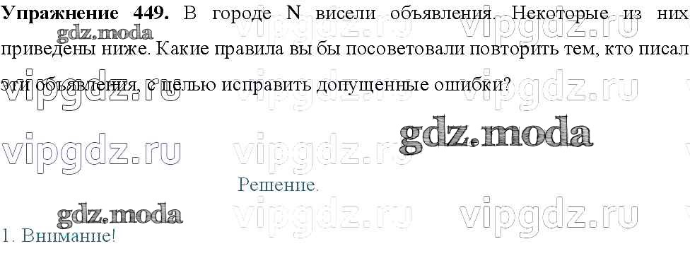 ОТВЕТ на задание № 449 Учебник по Русскому языку 8 класс Тростенцова